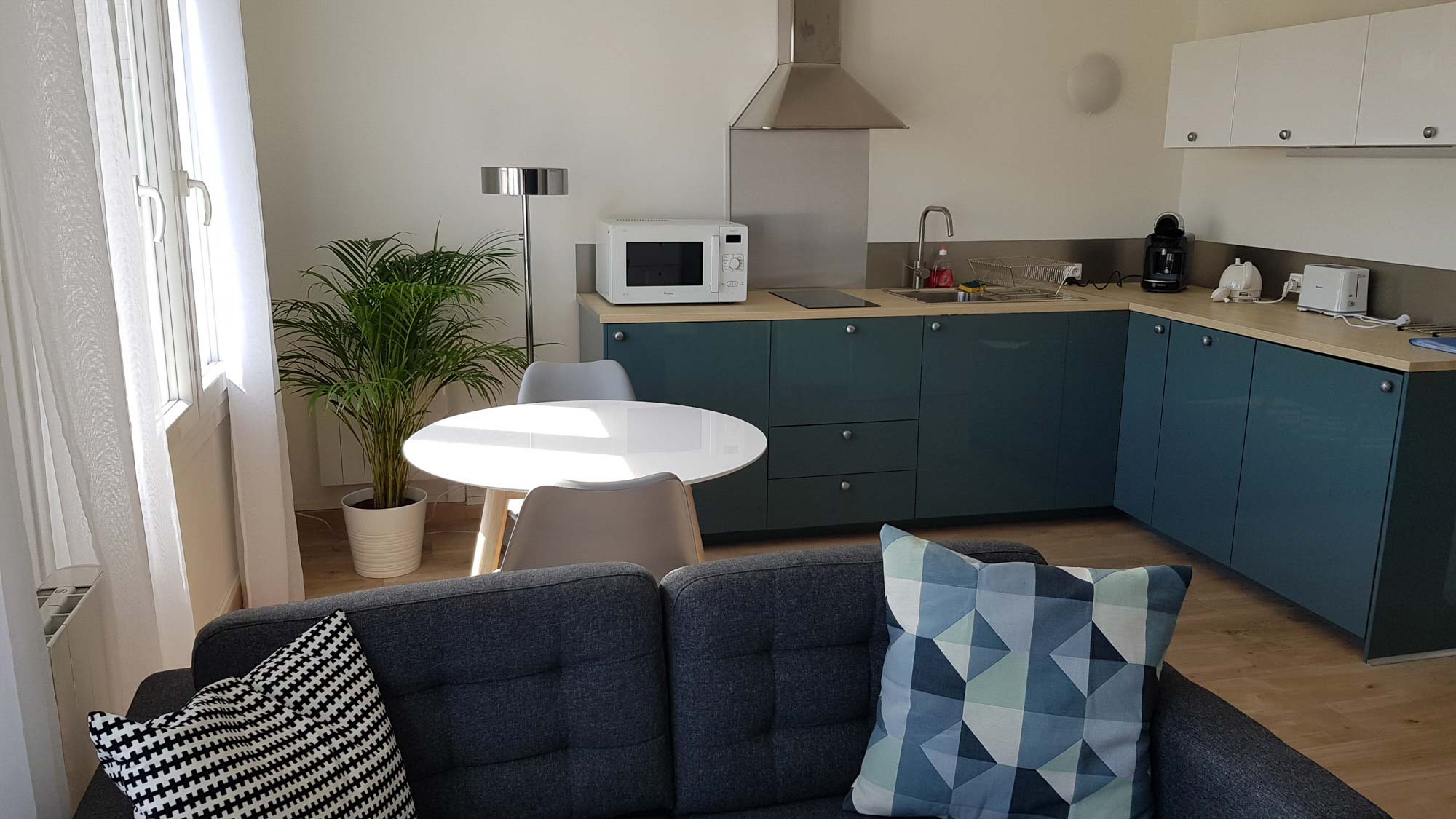 2 appartements T1 de 20 m² situé en hyper centre d’Issoire, au 2eme et 3eme étage d’un immeuble sans ascenseur, cuisine indépendante toute équipée (plaques de cuissons, four micro-onde, machine à café, réfrigérateur et machine à laver) et salle de bains avec douche et WC.